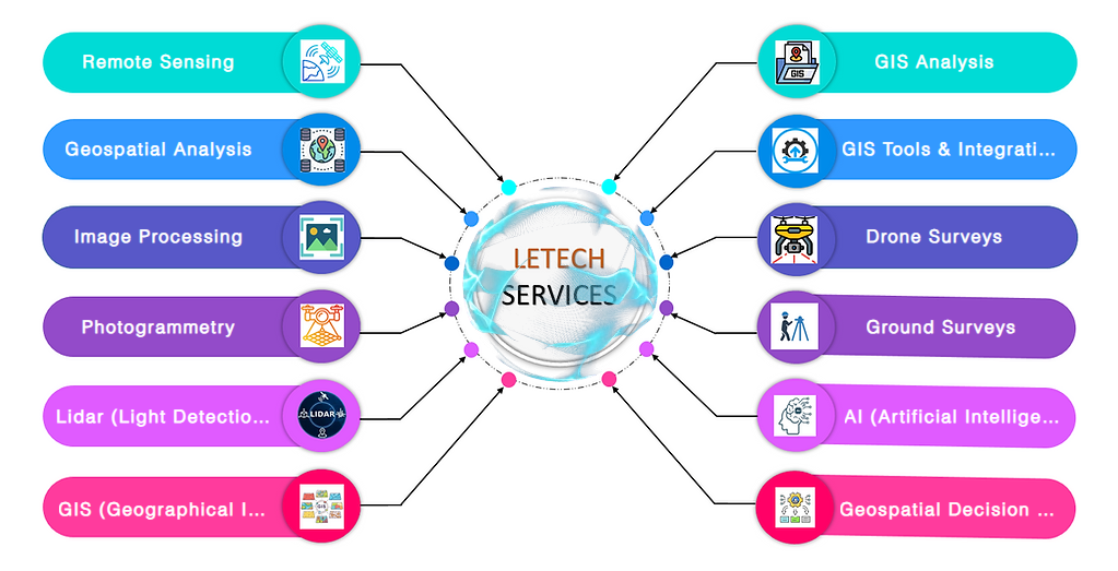 include advanced Remote Sensing (RS), Geographic Information Systems (GIS), Photogrammetry, LiDAR, Drone Surveys, and Ground Surveys. By utilizing these technologies, we provide precise data analysis and mapping solutions that support a wide array of industries. Whether it's urban planning, environmental conservation, disaster management, or infrastructure inspection, LETECH is at the forefront of geospatial intelligence.
