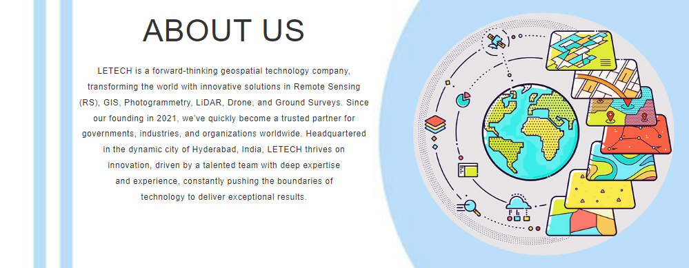 Land Earth Technologies (LETECH) has quickly positioned itself as a pioneer in the geospatial technology sector. From its inception, LETECH has been committed to delivering innovative, cutting-edge solutions that address complex challenges across various industries. Headquartered in Hyderabad, India, a renowned technology hub, the company leverages its expertise to serve clients globally, blending technology with actionable insights to drive decision-making.